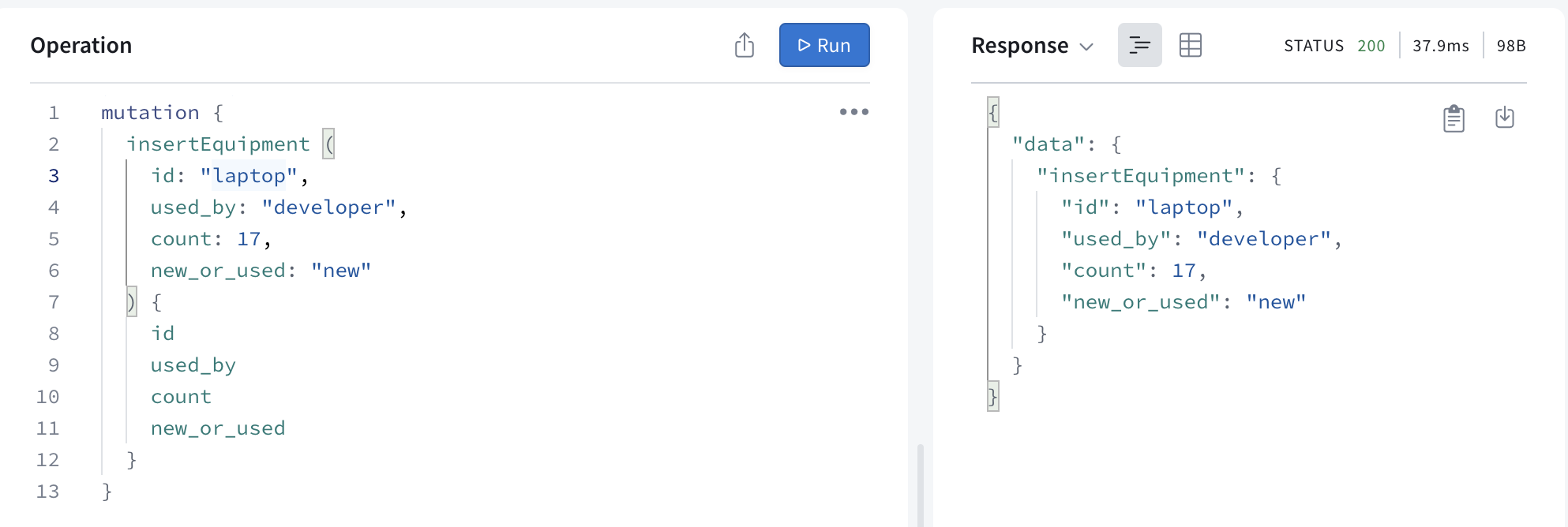 - 실행된 http://localhost:4000 에서 로컬 서버에 쿼리 및 테스트 가능